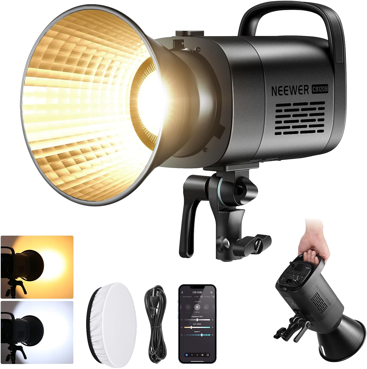 This pro kit features high-powered, 100w lights for those who want their lights mounted further away from their products for maximum light coverage over a large desk space. Choose between square or ball style softboxes. Square softboxes cast light only in a frontal direction, whereas the ball softboxes cast light to the front, sides, and slightly behind them. The type of diffuser/ softbox you choose for your lights depends entirely on your setup and streaming environment.